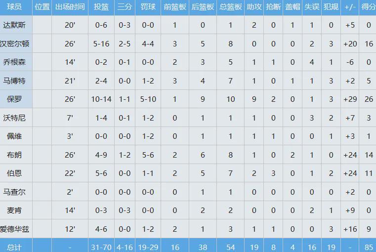 身体优势明显的澳大利亚,全队抢了54个篮板球,其中16个前场板,有着4人得分上双,其中保罗贡献26分10板9助准三双数据。