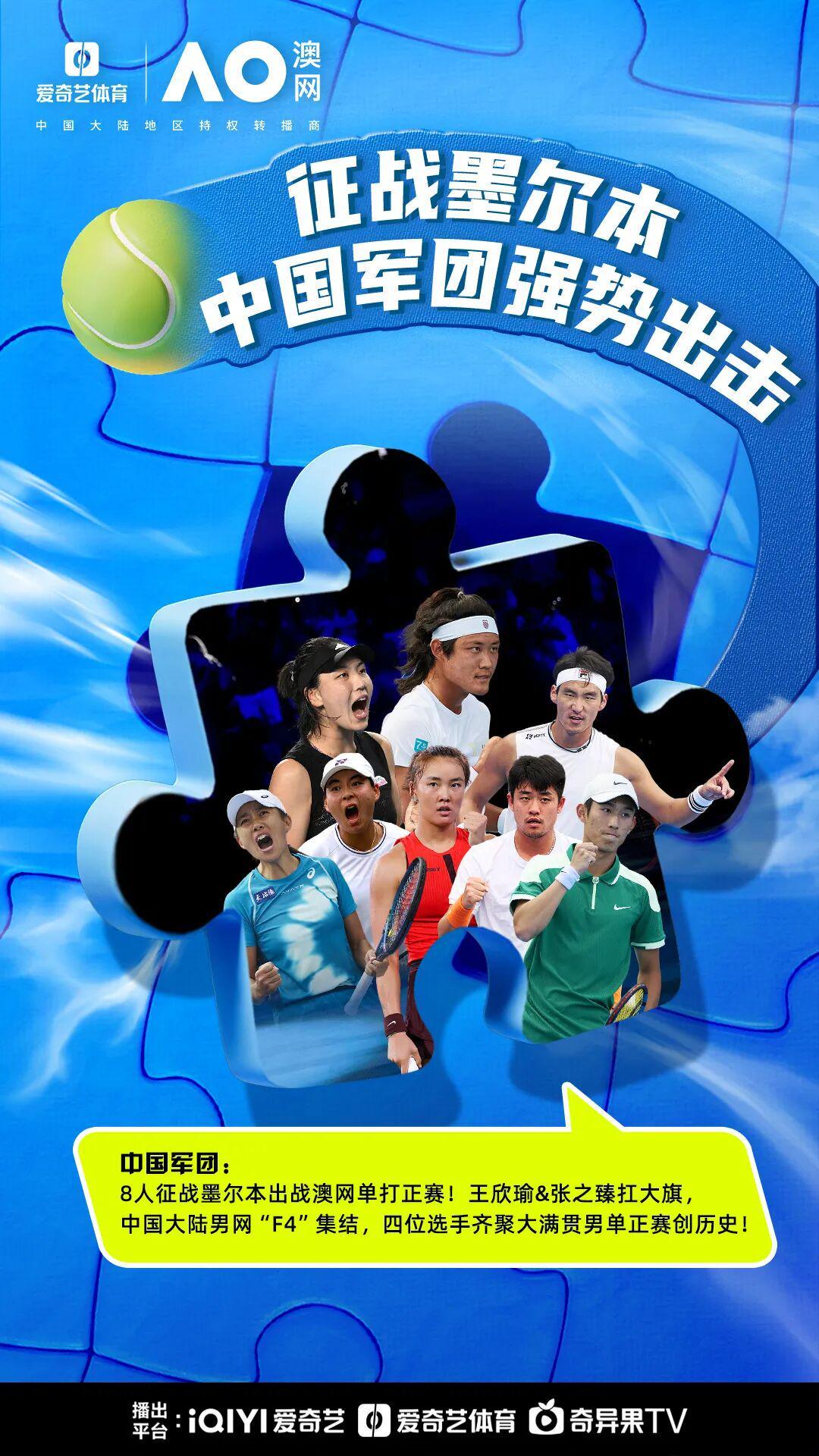 王欣瑜、张之臻领衔中国军团8人征战单打,男网“F4”首次集结携手冲佳绩!新绝代双骄辛纳、阿尔卡拉斯能否延续对大满贯决赛的无情垄断?德约能否收复失地冲击大满贯25冠?萨巴伦卡、斯瓦泰克、高芙、莱巴金娜开启争冠四天后模式?兹维列夫、阿利亚西姆、弗里茨、阿尼西莫娃、佩古拉、凯斯对男女单至高荣耀虎视眈眈!盛夏的墨尔本公园即将上演一出精彩无限高潮迭起的网坛开年大戏!爱奇艺体育在此为您梳理看点,请注意查收。
