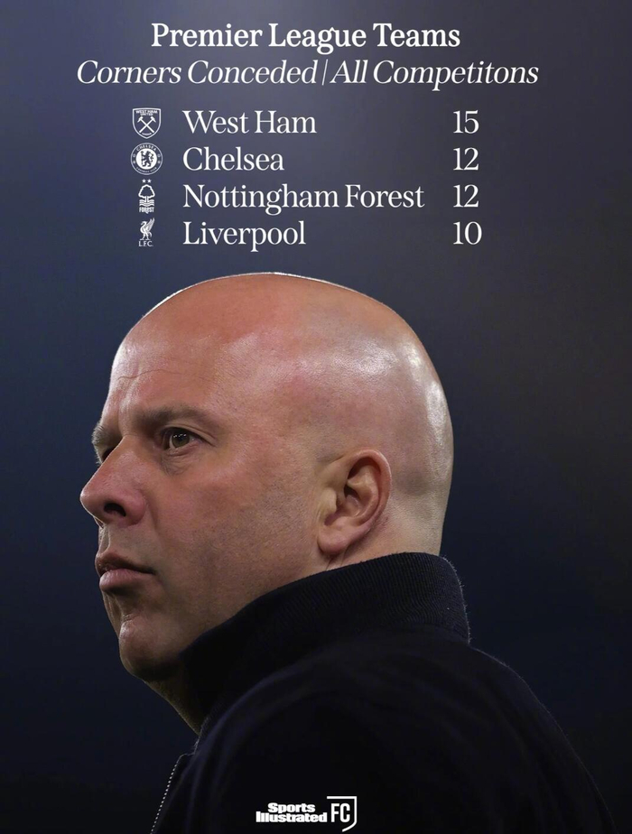 据SI的数据显示,本赛季利物浦各项赛事角球丢球数已达10球,在英超球队中排名第四。比红军更多的只有西汉姆的15球以及切尔西和诺丁汉森林的12球。